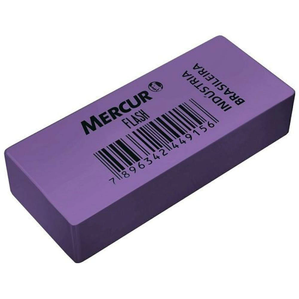 Borracha (colorida) Flash Color Mercur Suave e macia, resistente à dobra e não quebra com facilidade. As versões coloridas não mancham o papel. Aromatizadas. Indicada para apagar escrita a lápis e lapiseira, e qualquer graduação de grafite.