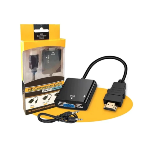 Características principaisMarcaHD ConversionModeloMini Adaptador HDMI para VGAOutrosConector de entrada: HDMIConector de saída: VGAComprimento do cabo: 15 cmQuantidade de conectores de entrada: 1Quantidade de conectores de saída: 1DescriçãoO Adaptador conversor HDMI para VGA permite a conexão do seu Computador com a conexão de saída VGA a um Monitor, TV ou Projetor com a conexão de entrada HDMI. Suporta resolução até 1080 FULL HD. Pode ser um aliado no dia a dia para quem trabalha com muitas telas, além de ajudar na sua organização. Projetado para resolver uma operação simples do usuário das soluções de conectividade do dispositivo de exibição.Modos de Tela: Espelho e modo de extensãoCompatível com: Computador / DVD / set - top box digital / laptop / celular / câmera digital / Tablet PC / media player / uma variedade de fontes HD, como dispositivos de entrada. Sinais de áudio e vídeo para a TV / monitor /saída do projetor.CARACTERISTICAS:- Conversão analógico-digital portátil;- Padrão: HDTV/Mini HDTV/fontes HD de entrada Micro HDTV;- Áudio e saída de vídeo para VGA + Áudio;ESPECIFICAÇÕES:Não necessita de fonte de alimentação;Plug in play, conecta fácil;Resolução: 720p / 1080i / 1080pÁudio de saída: soquete de áudio 3.5 ou 3.5 Para R + L 5.Entrada: HDTV / Mini HDTV / Micro HDTVSaída: VGA + ÁudioLISTA DE EMBALAGEM:1x adaptador conversor HDMI para VGA;1x cabo auxiliar P2 para saída de áudio.