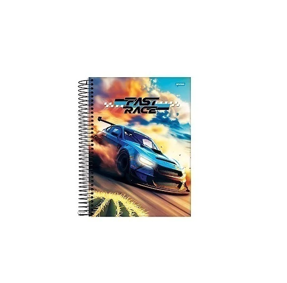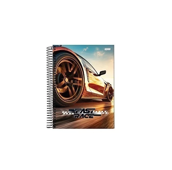 • Características do Produto: Caderno Universitário Capa Dura 10 Matérias 160 Folhas Fast Race